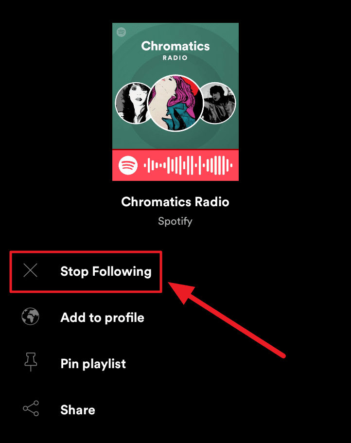 This would instantly remove the artist from your library and you’ll unfollow them.