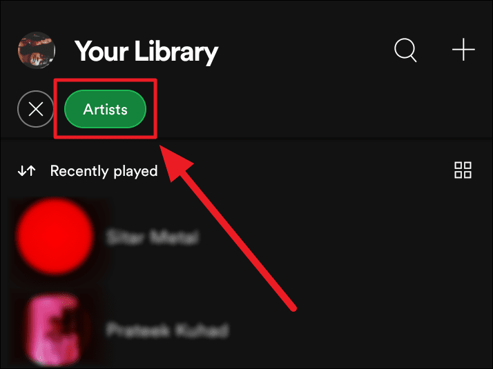 Launch Spotify on your phone, head onto the ‘Your Library’, and select the ‘Artists’ tab.