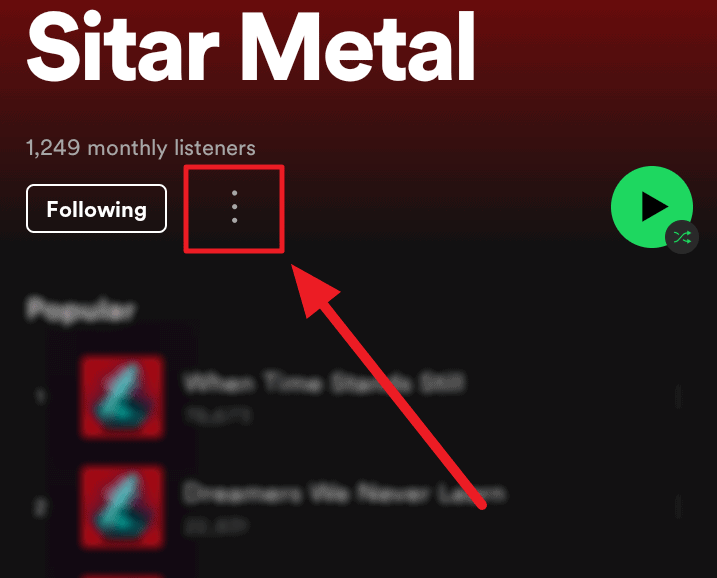 Method 3. Tap the ellipsis icon (three vertical dots) next to the ‘Following’ button on the artist’s profile.