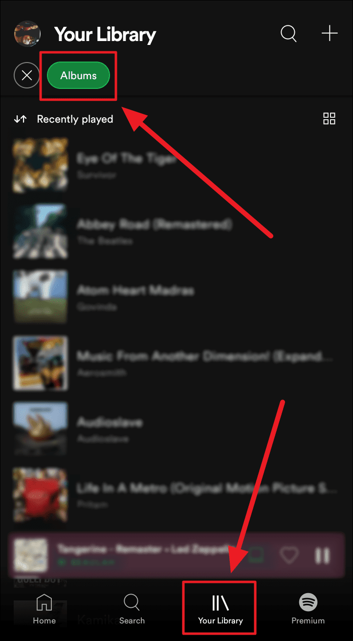 Method 1. Open Spotify on your phone, tap the ‘Your Library’ button to the bottom left of the screen, and select the ‘Albums’ tab to make it easier to view and remove albums from your library.