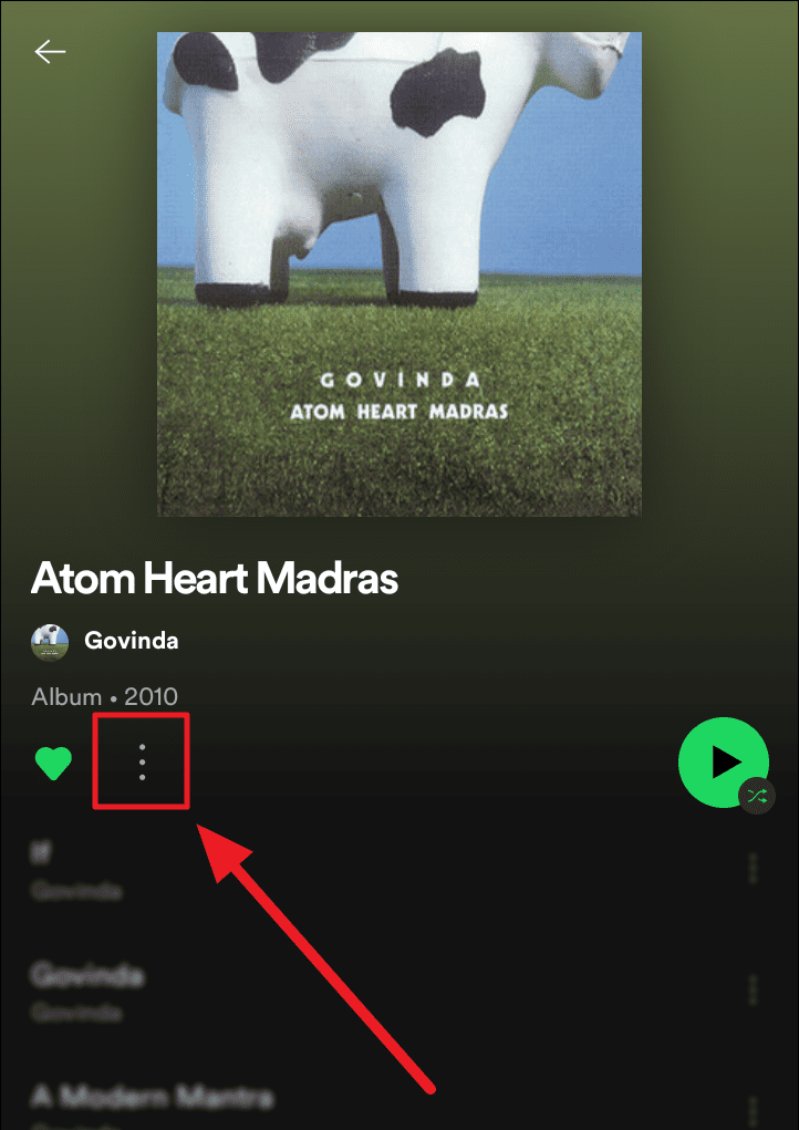 Method 3. Open the targetted album and tap the ellipsis icon (three vertical dots) next to the green ‘Heart’ button.