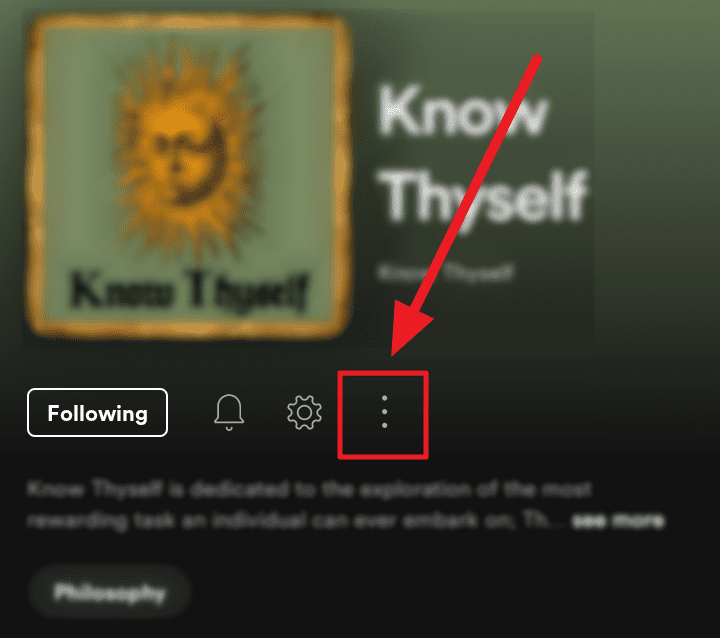 Method 3. Open the podcast or show you want to remove from your library and tap the ellipsis icon (three vertical dots) below the podcast/show’s name and cover image.