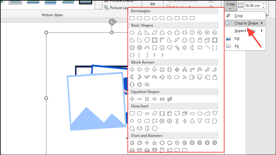 - You can crop the image as you like using the standard Crop option or select any of the preset shapes to crop it in that particular shape.