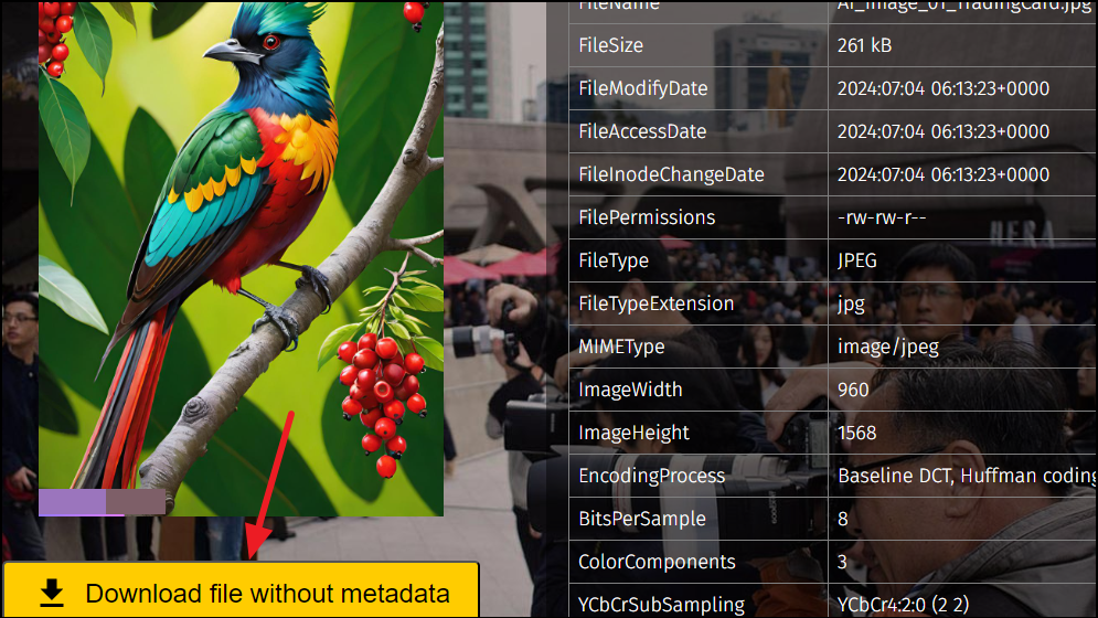 - Once you've removed the metadata from the image, click on the 'Download File Without Metadata' button.