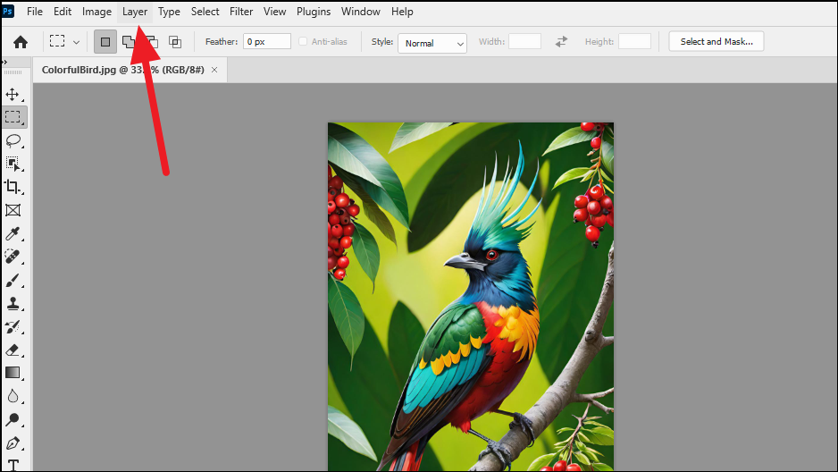 - Once you're done, click on the 'Layer' menu at the top.