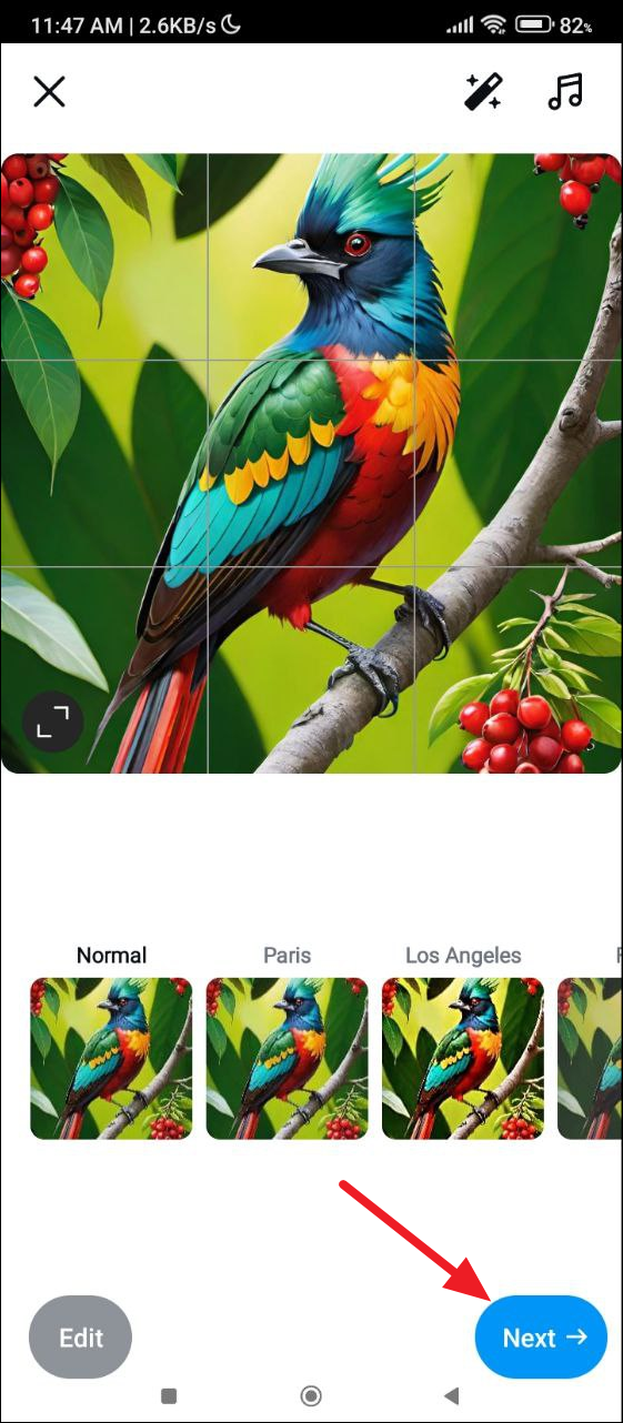 - After uploading the image you want to post, tap on the 'Next' button on the lower right.