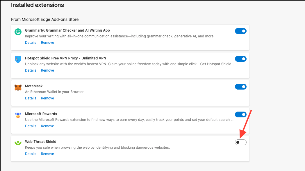 Once you've completed these steps, Web Threat Shield will be successfully removed or disabled in Microsoft Edge.