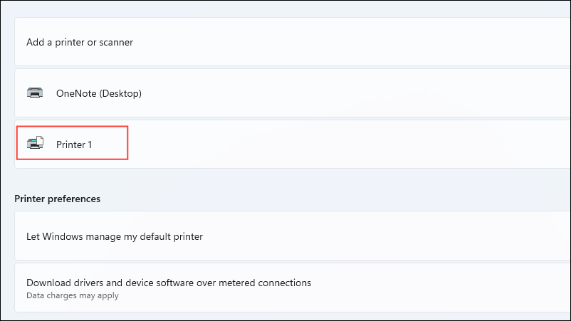 Step 7: Return to the 'Printers & scanners' page, and you'll see that the printer now appears with its new name.