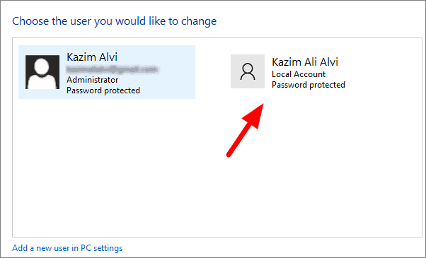 You can now see both the user accounts, the old one and the new one. Click on the new local account.