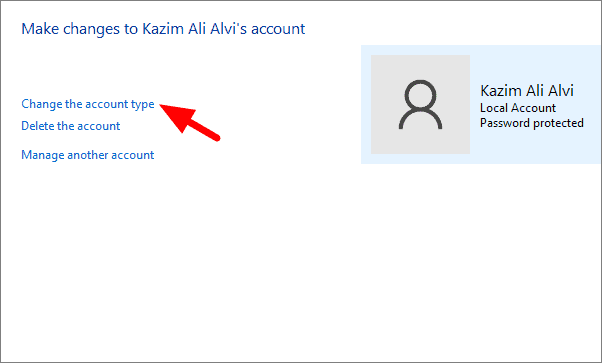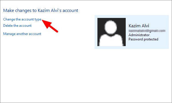 Now, select ‘Change the account type’, the first option.