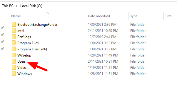 In the C drive, select ‘Users’.