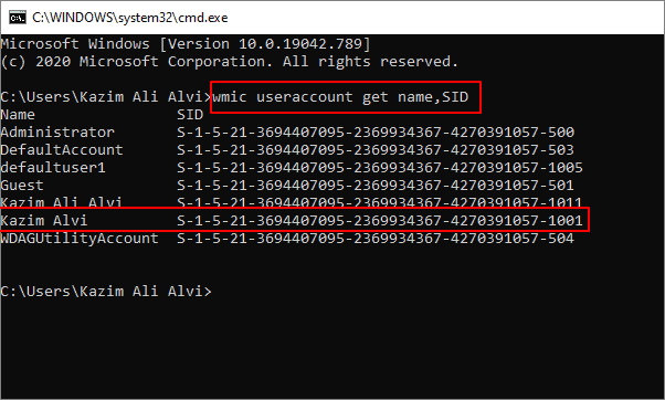 wmic useraccount get name,SID
