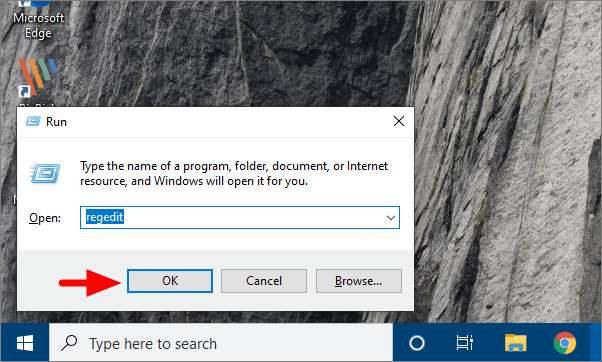 Again, press WINDOWS + R and type ‘regedit’ in the text box of Run to open the Registry Editor.