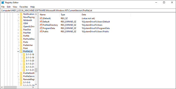 HKEY_LOCAL_MACHINE\SOFTWARE\Microsoft\Windows NT\CurrentVersion\ProfileList