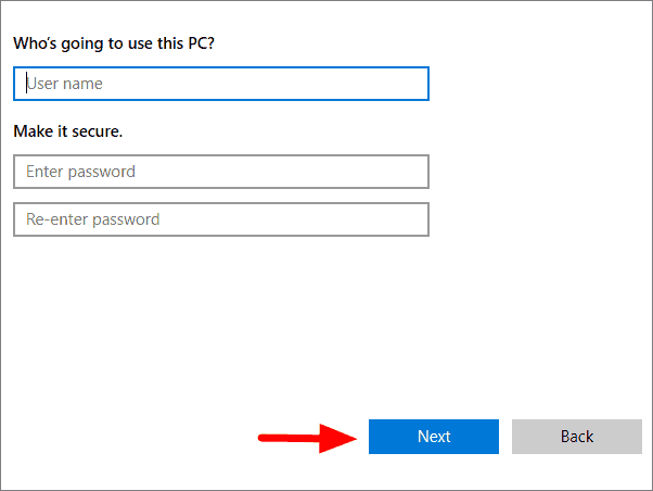 You will now be asked to enter a username and password. Enter the username you planned to use for your old user account. After you enter the password, you will be asked to set three security questions, in case you forget your password. After filling out all the sections, click on ‘Next’ at the bottom.