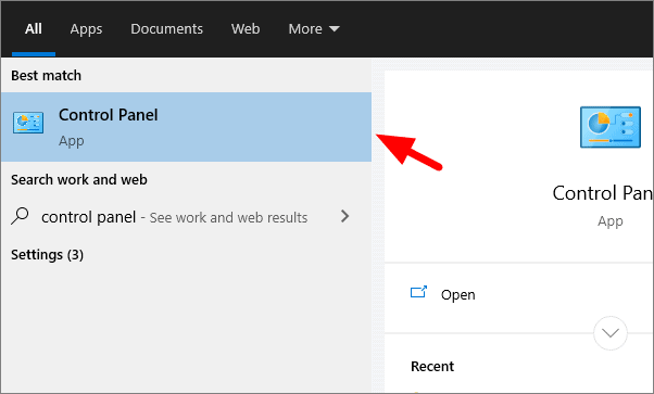 To change the account type to the administrator, search for ‘Control Panel’ in the Start Menu and then open it.