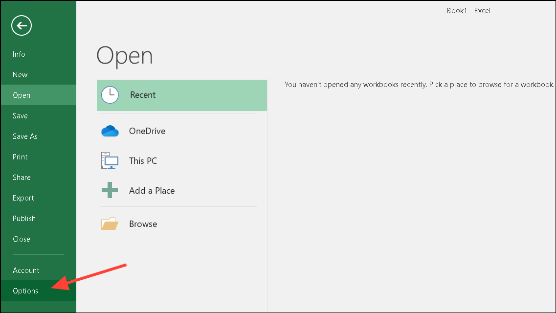 - Open Excel, click on the File menu, and then on 'Options' as explained above.