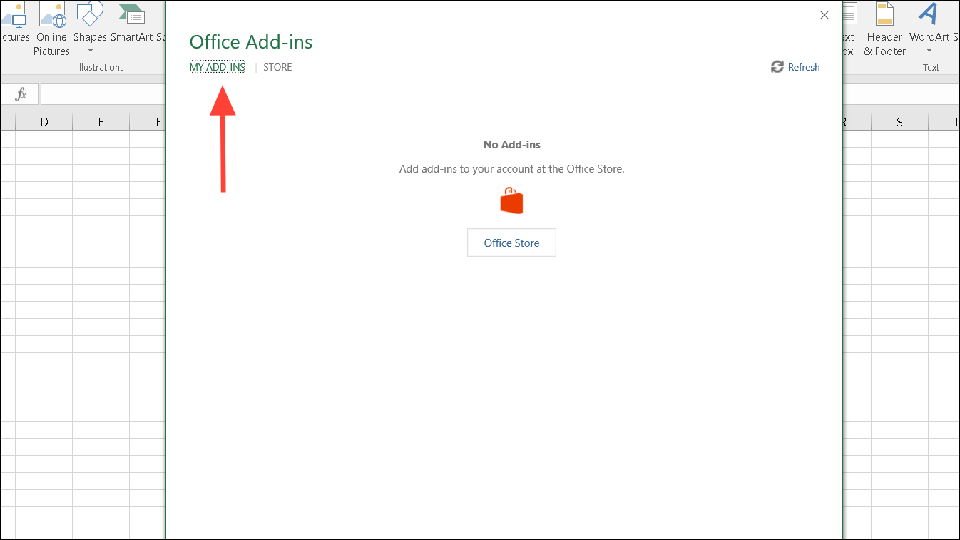 - Then click on 'My Add-ins' in the pop-up that appears.