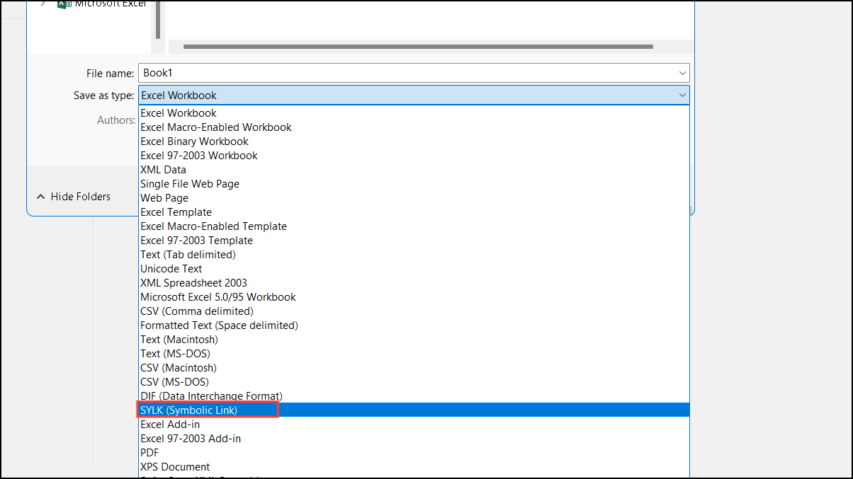 - Select 'SYLK Symbolic Link' option from the 'Save As' dropdown menu. Make sure to save only the active worksheet instead of the entire workbook.