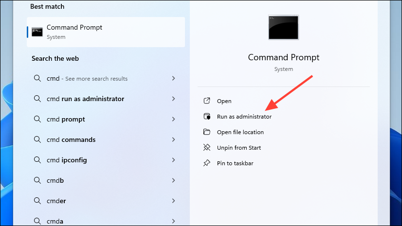 cmd, and click on 'Run as administrator'.