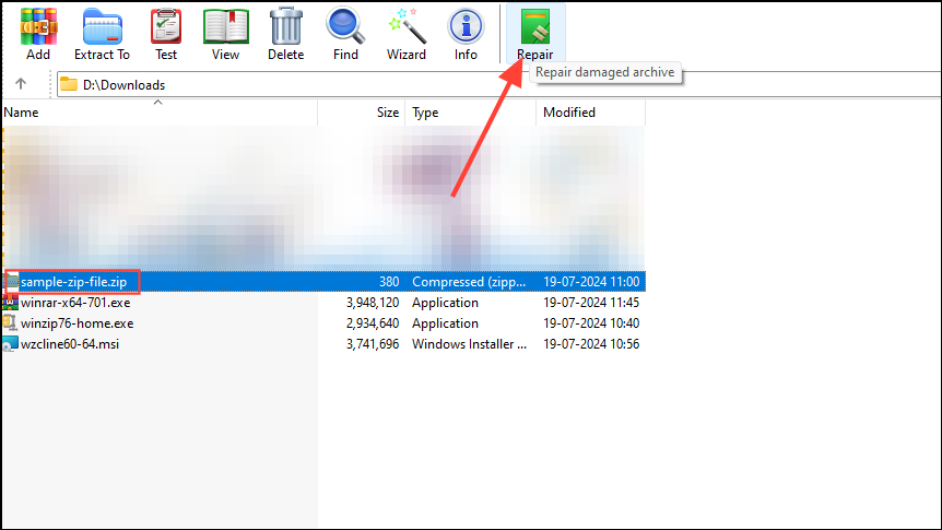 Method 3: Repair the ZIP file using WinRAR