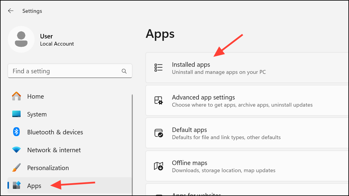 Step 2: Open the Start menu and select Settings. Navigate to Apps > Installed apps. Scroll through the list to locate your Microsoft Office or Microsoft 365 installation.