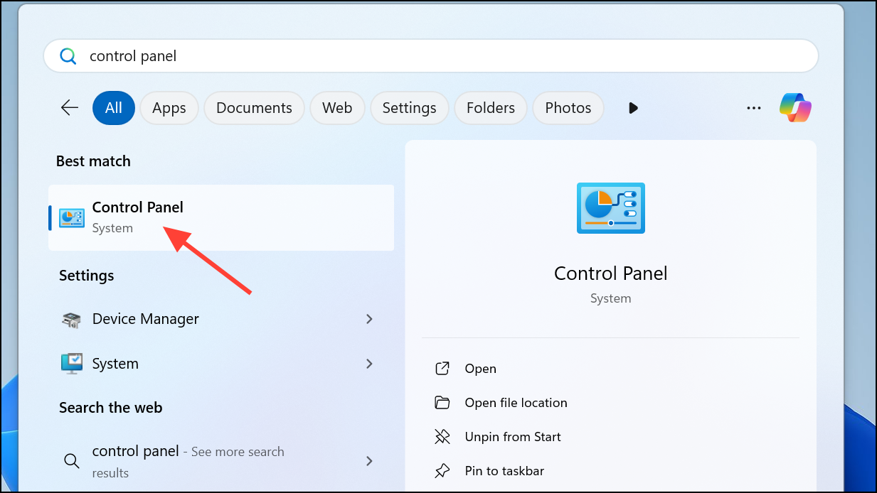 Step 2: Open the Control Panel by typing "Control Panel" in the Windows search bar and selecting it from the results.