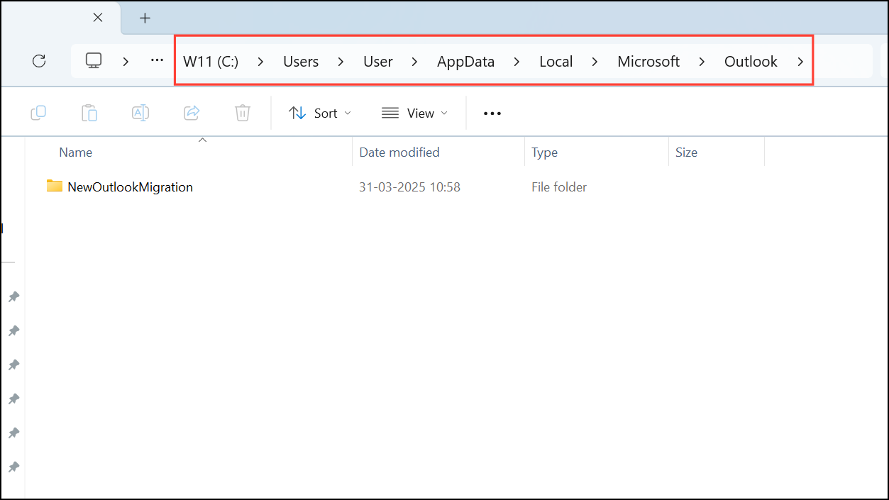Step 2: Open File Explorer and navigate to the following path to access Outlook's local data: