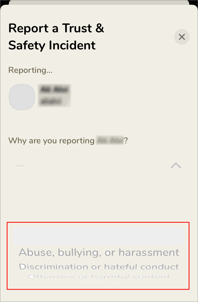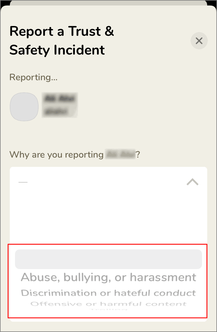 The ‘Report a Trust & Safety Incident ‘ page will open. Select a reason for reporting the profile from the list of options, and then scroll down to fill out the rest of the form.