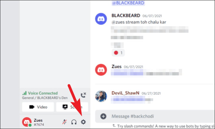 To report someone to Discord’s Trust and Safety Team, from the Discord website, click on the ‘gear’ icon present at the bottom section of your page. This will open the Discord settings page on your browser.