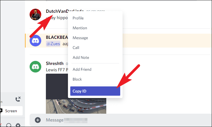Now, right-click on the particular user from the right sidebar and then choose the ‘Copy ID’ option present on the context menu. Make sure to paste the ID in a handy location from where you can retrieve it quickly.
