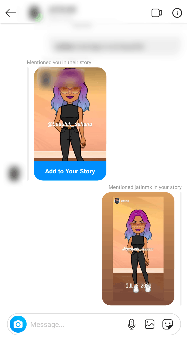 When you repost someone else’s story that you’re tagged in, you would in turn be mentioning that other person on your story too. Now, on the same chat, you’d find another notification of your repost.