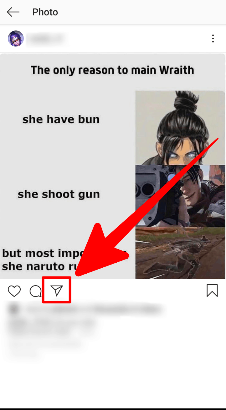 Now, the post would open in the owner’s Insta profile. Below every post would be three icons; a heart, a speech bubble, and a paper plane. The paper plane is the ‘Send’ option. Tap it.