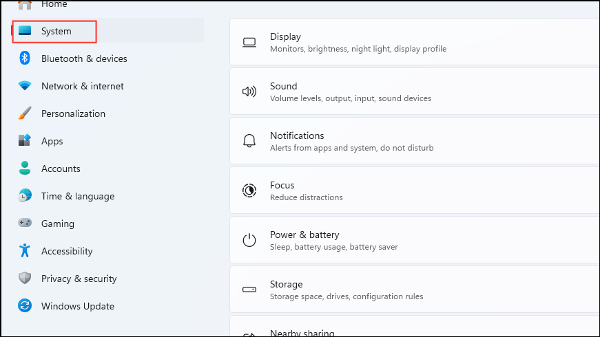 Step 1: Open the Settings app and select 'System' from the left sidebar.
