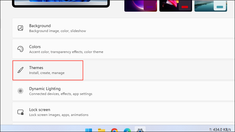 Step 2: In the Personalization settings, select the 'Themes' option.