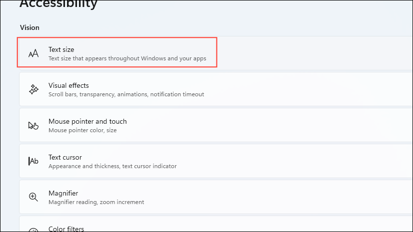 Step 1: In 'Accessibility' settings, click on 'Text size'.