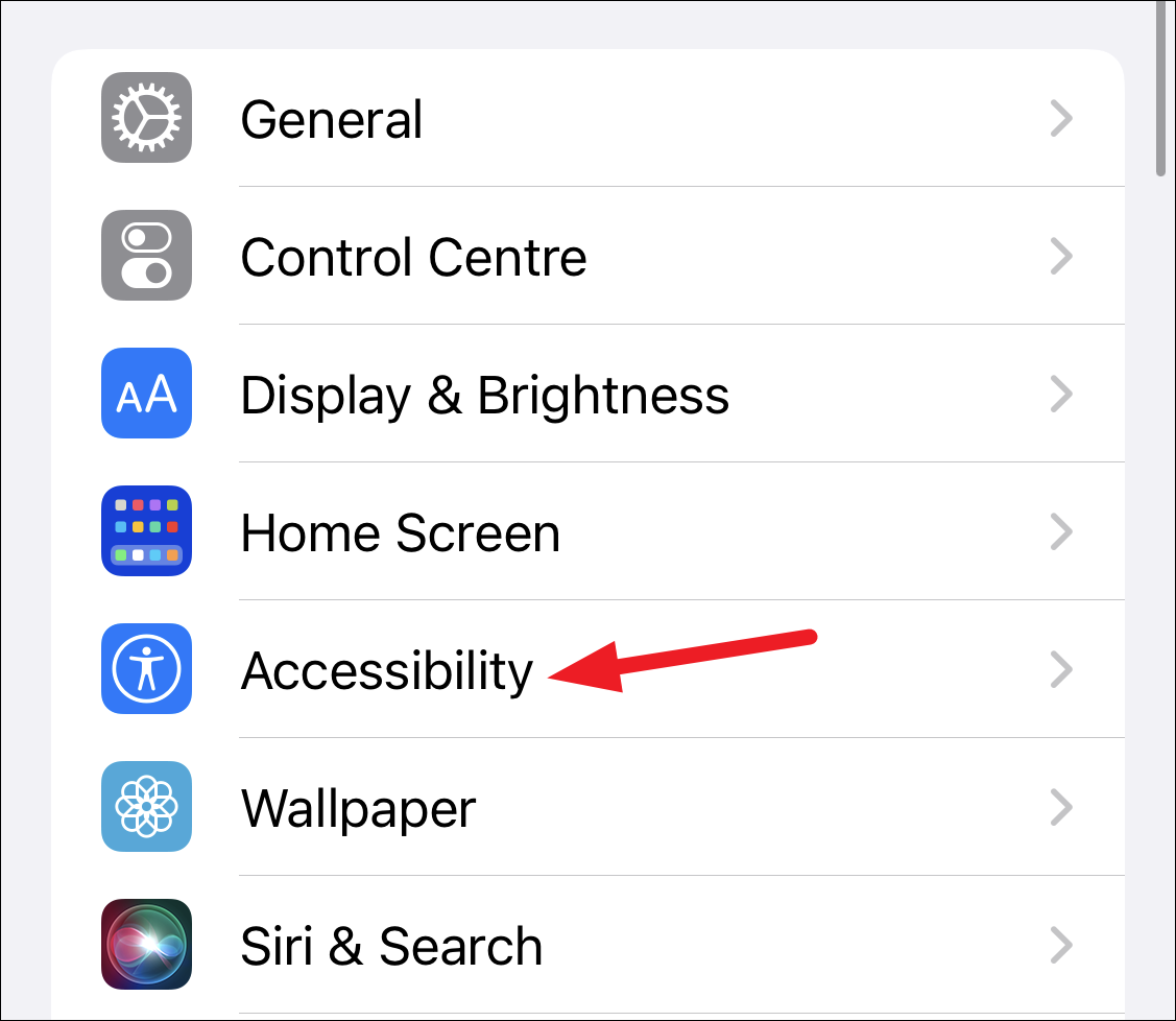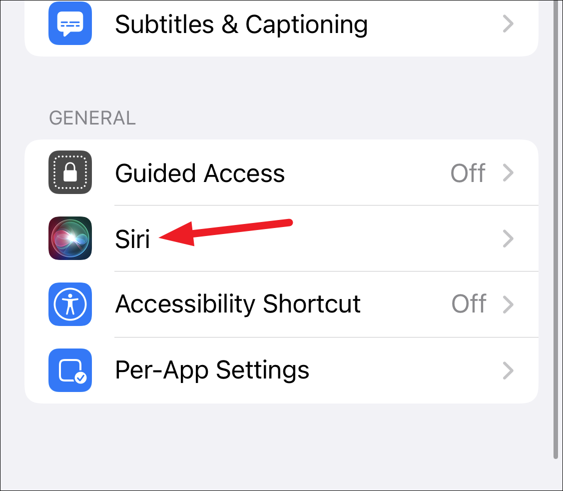 Then, scroll down in the accessibility options and tap the option for ‘Siri’.