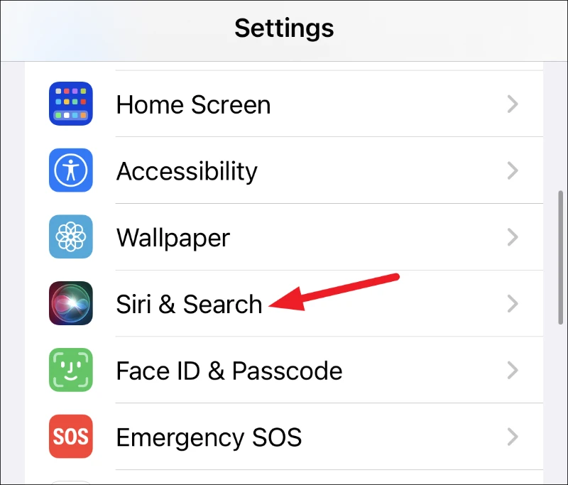 Open the Settings app on your iPhone. Then, scroll down to ‘Siri and Search’.