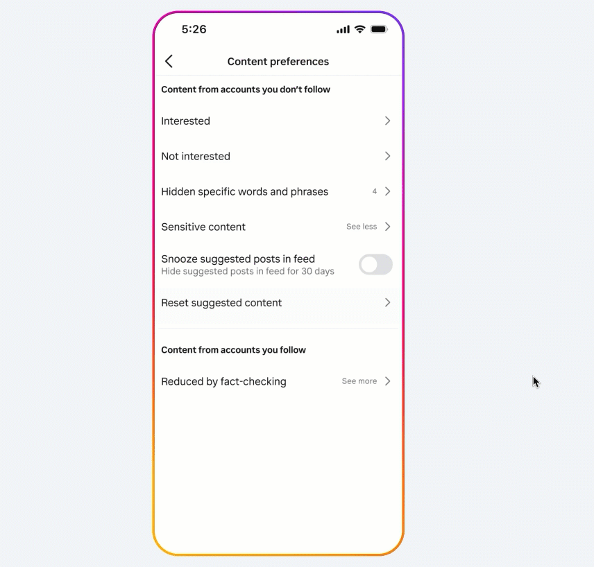 Resetting recommendations effectively resets Instagram's algorithm, so you can begin afresh. Over time as you continue to use Instagram, the platform will start personalizing your recommendations again and you will see accounts and content based on those.