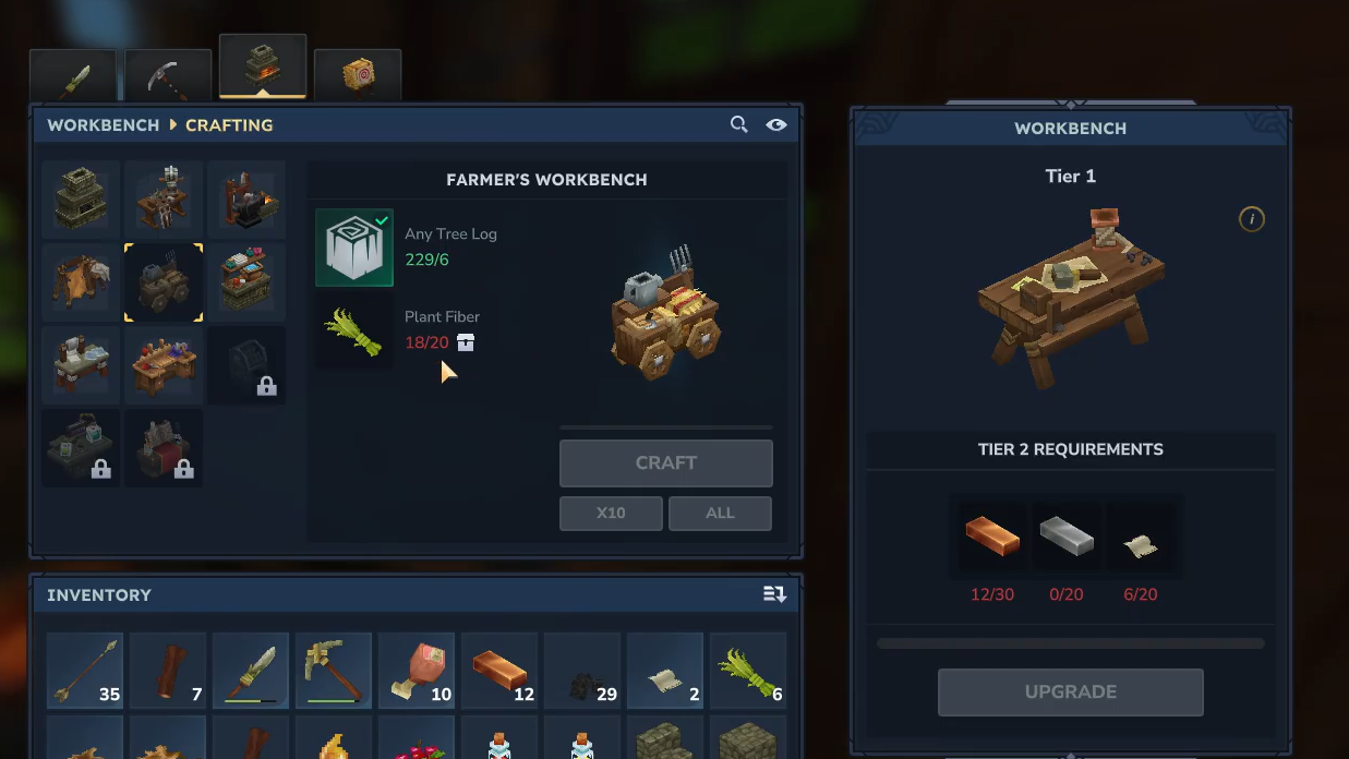 | Farmer's Workbench | Workbench (Crafting) | Any Tree Log ×6, Plant Fiber ×20 |