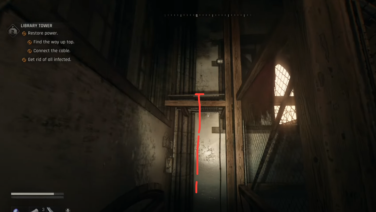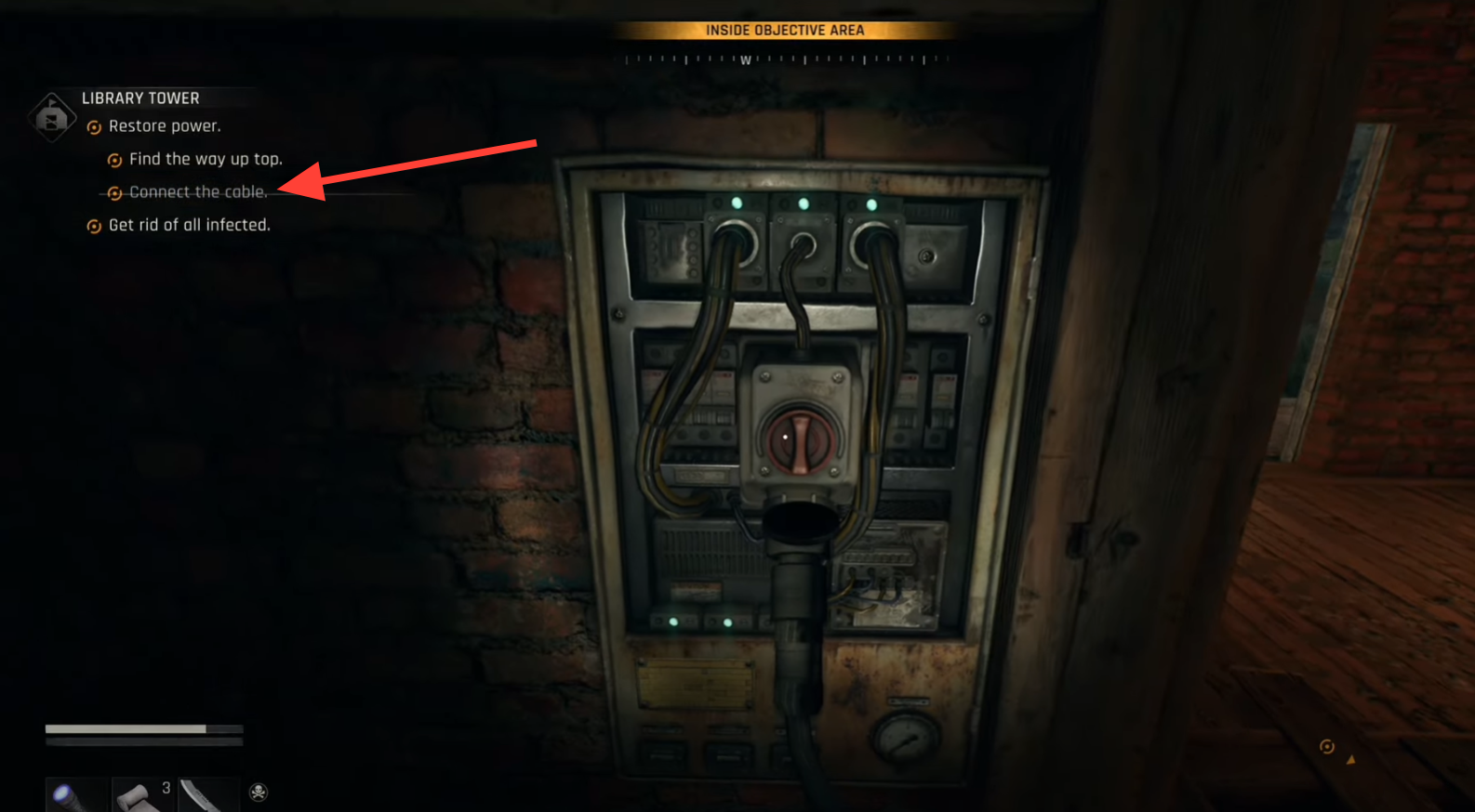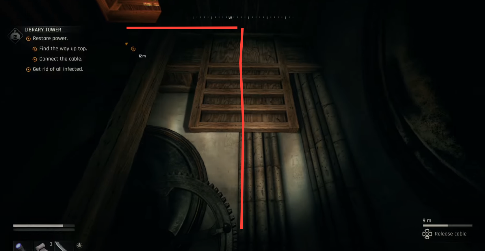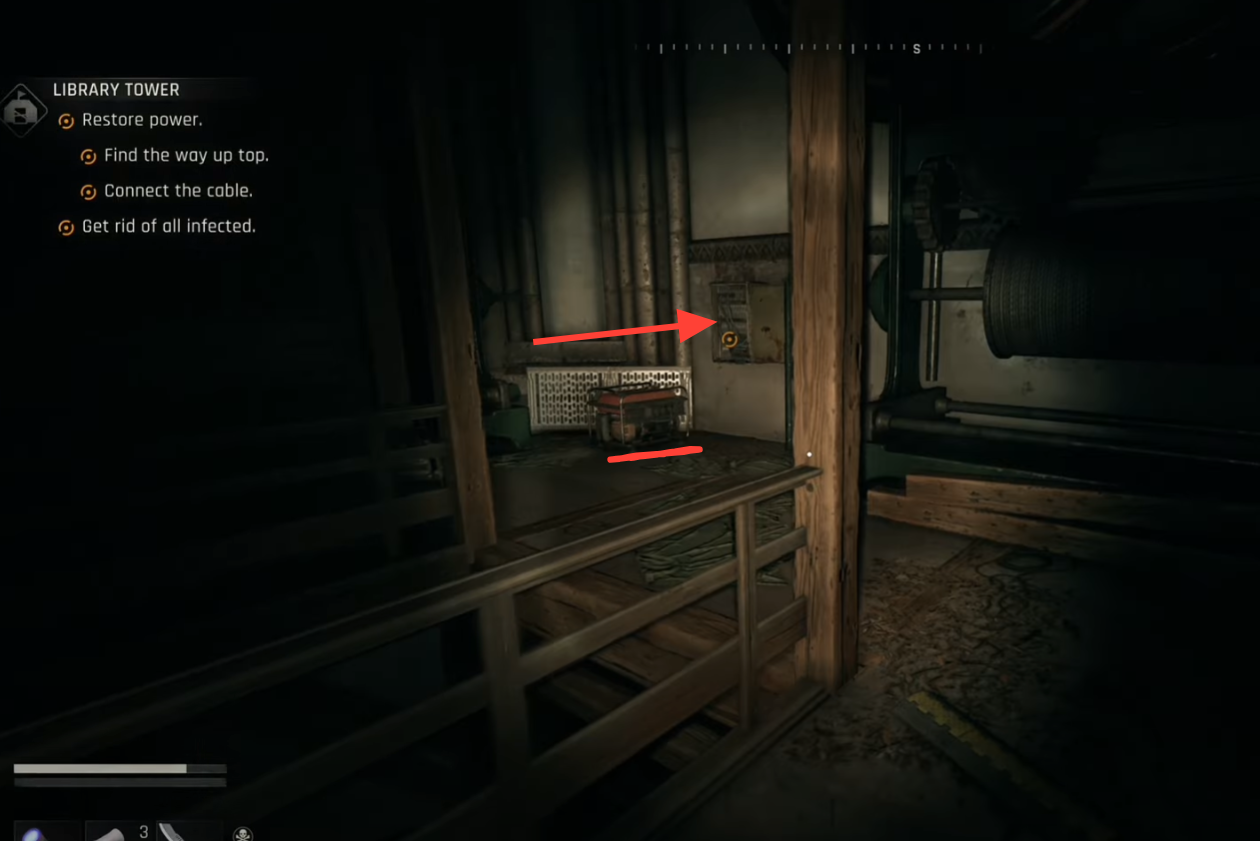 Restoring power to the Library Tower unlocks a valuable safe spot just north of Town Hall and introduces one of the game’s early multi-socket cable puzzles. The route is short but precise: you’ll ascend via interior ledges, then route a single cable to the only functional box after using a moving gear to gain height. Doing this during daytime reduces chases and speeds up the run.