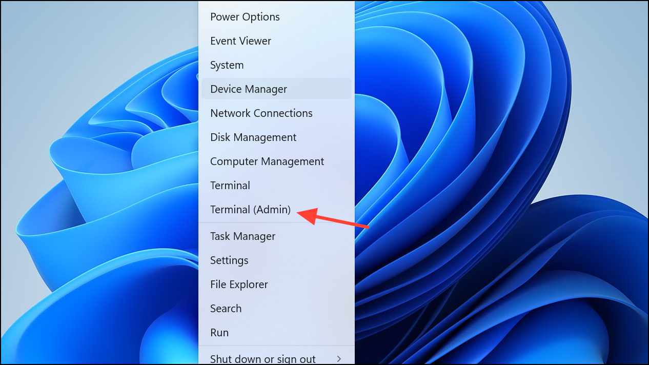Step 1: Open Command Prompt as an administrator. Press Win + X and select Terminal (Admin) or Command Prompt (Admin).