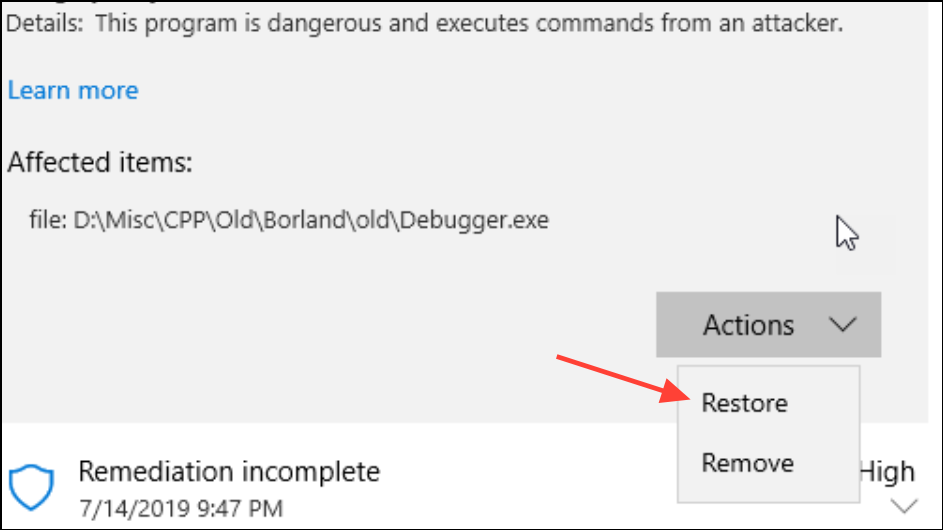 Restore Quarantined Files Using Command Prompt