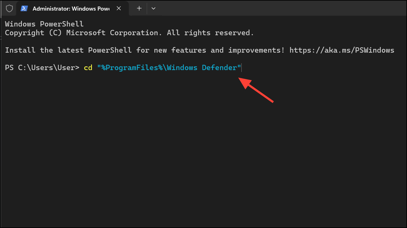 Step 2: Navigate to the Windows Defender directory by running:
