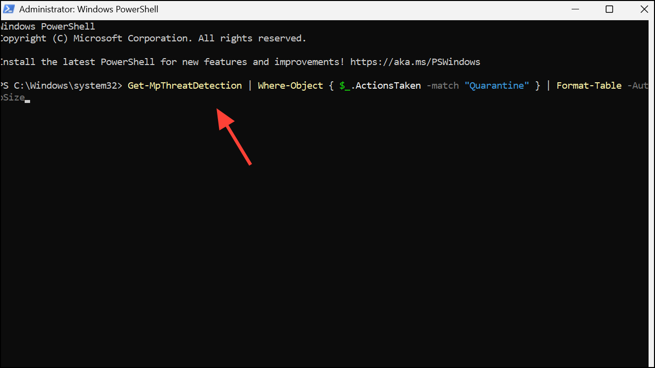 PowerShell offers another way to interact with Defender’s quarantine, especially for advanced users or bulk operations.