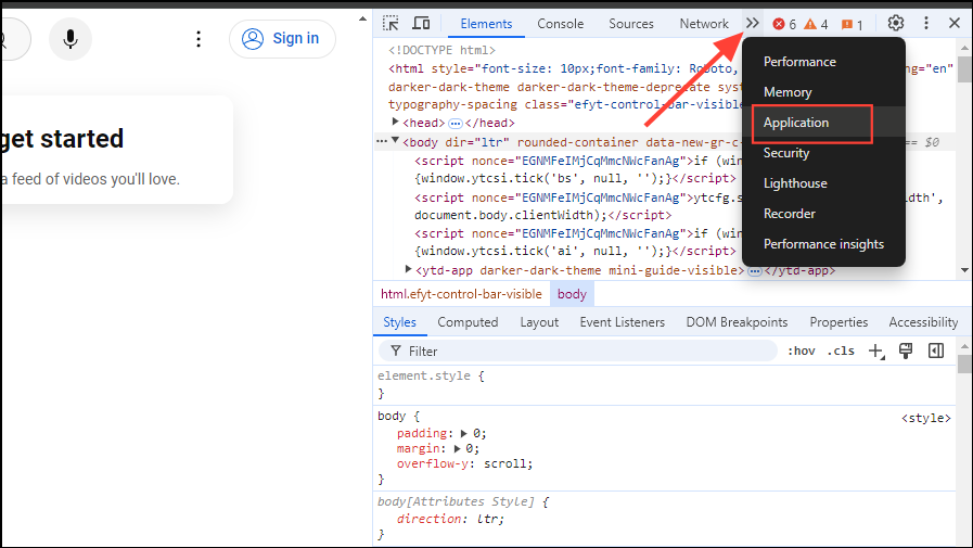 - Click on the two arrows pointing right to view additional options and then click on 'Application' in the drop-down menu.