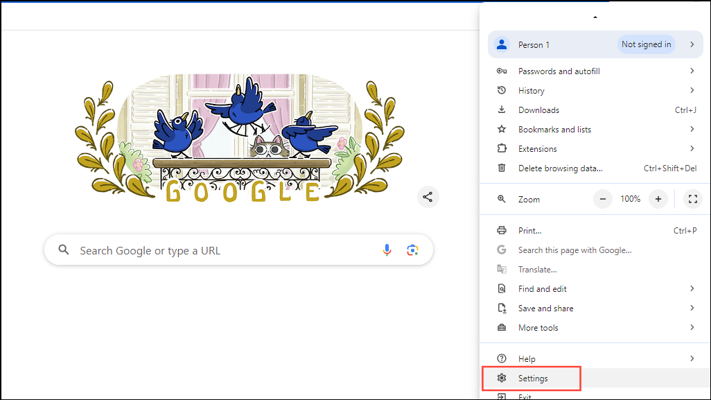 - Open Chrome settings by clicking on the three dots at the top right and then on 'Settings' in the drop-down menu.