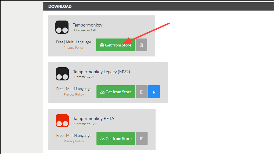 - Visit the TamperMonkey website and scroll down until you see your browser.