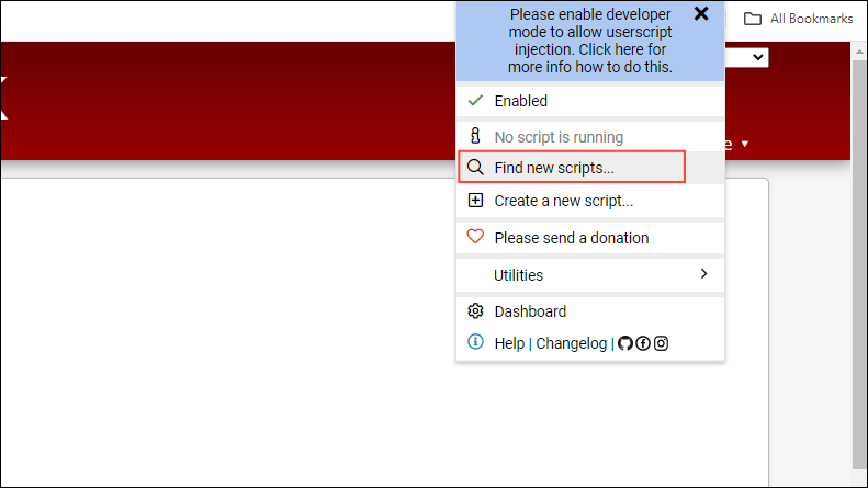 - Once the script is installed, click on the TamperMonkey extension again and then on 'Dashboard'.