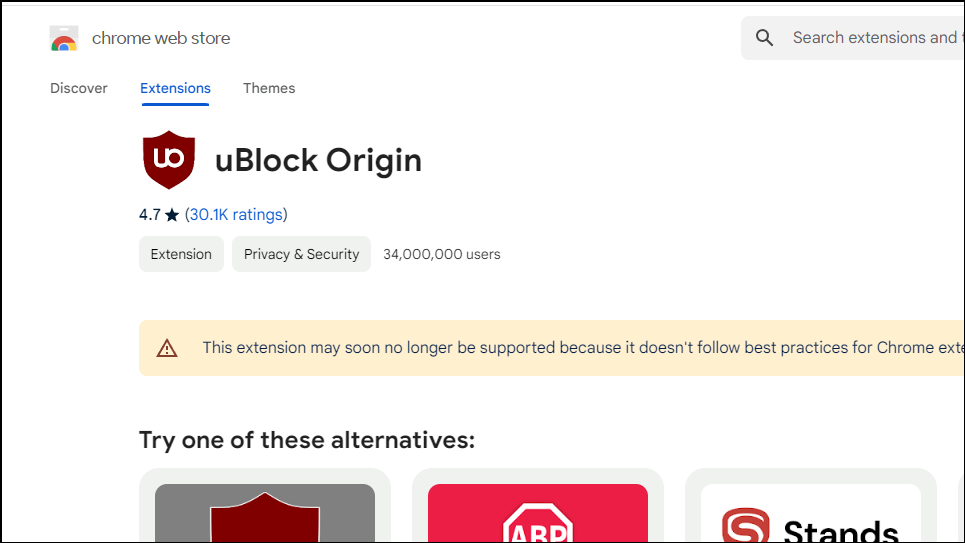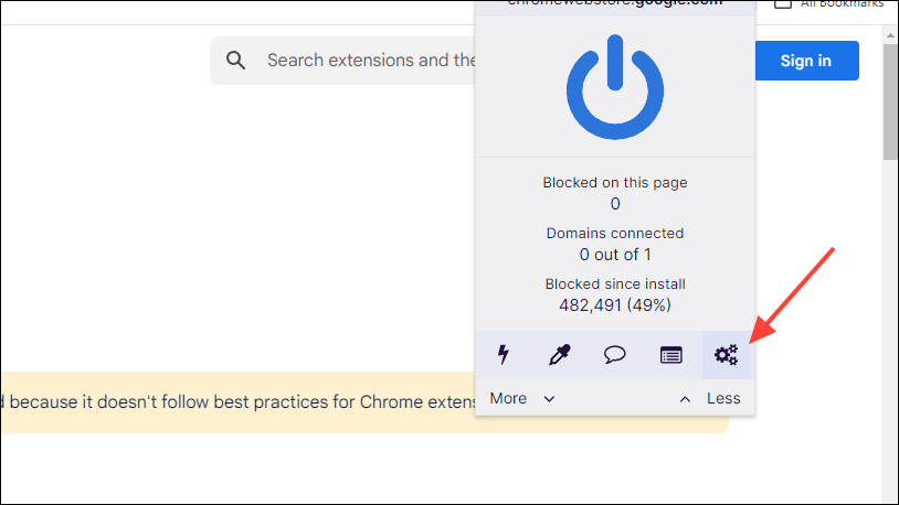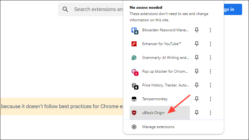 - Once the extension is installed, click on the Extension button and then on uBlock Origin.